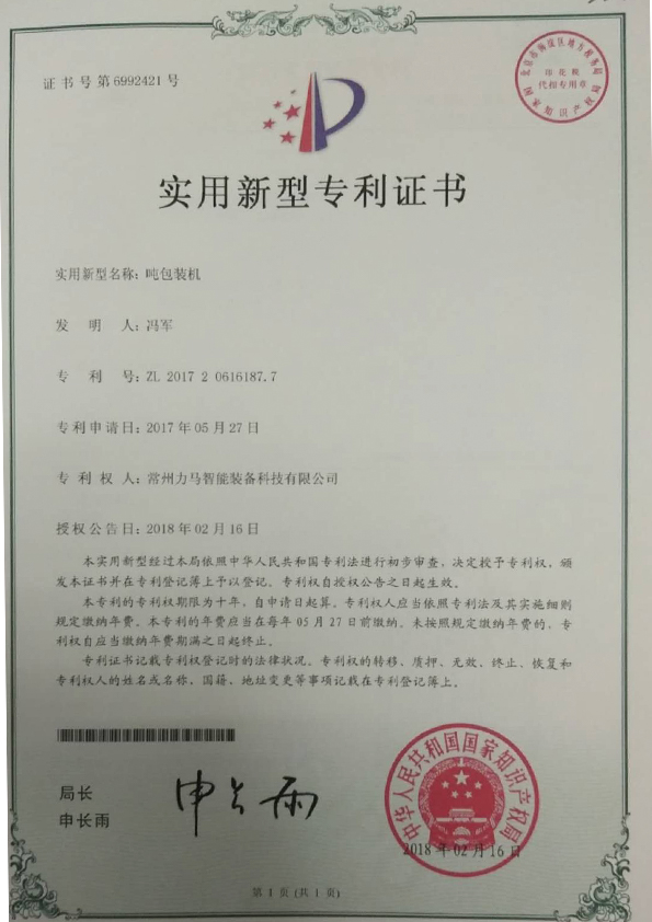 專利證書-噸袋包裝機(jī)